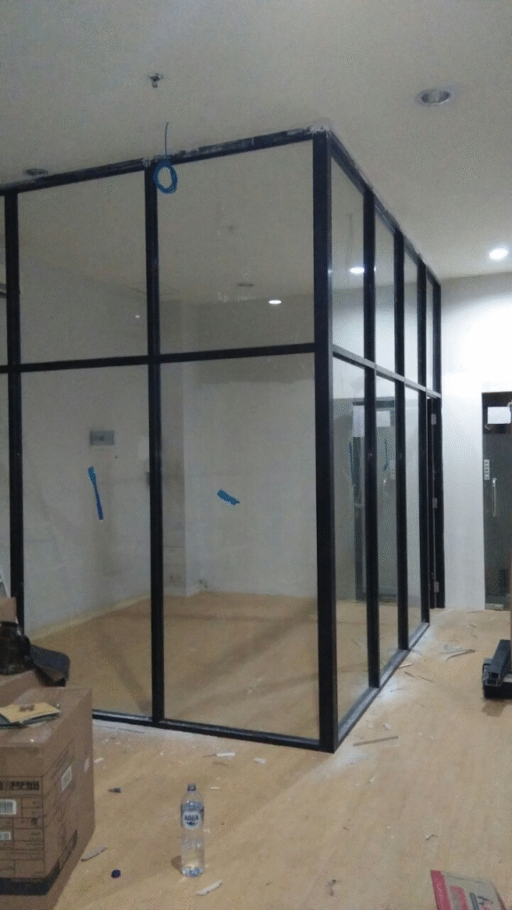Banyak digunakan di kantor, ruko, dan rumah modern untuk pembatas ruangan tanpa membuat ruangan terasa sempit.